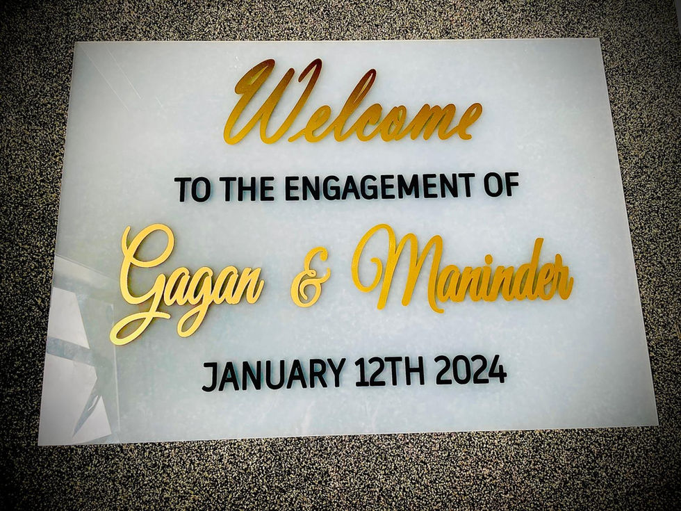 Stylish elegant signs for Weddings,Birthdays,Anivversary or any other event with our variety of Colur Options and Sizes.